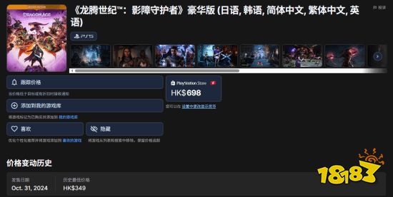 同时,《龙腾世纪4》的数字版也同步降价。标准版原价 549 港元,当前史低价为 192.15 港元;豪华版原价 698 港元,史低价为 349 港元。无论主机或数字平台,折扣力度都较以往更为明显。