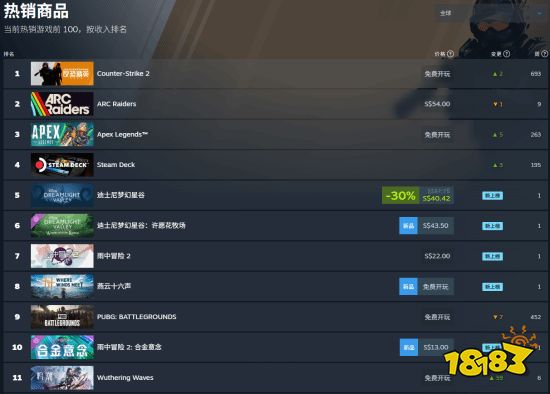 值得一提的是,《鸣潮》也凭借版本更新与人气提升,成功登上 Steam 全球热销榜。截至发稿时,其排名位列第 11 名;若仅统计免费游戏,则已跃居第 5,仅次于《绝地求生》和网易旗下的《燕云十六声》。