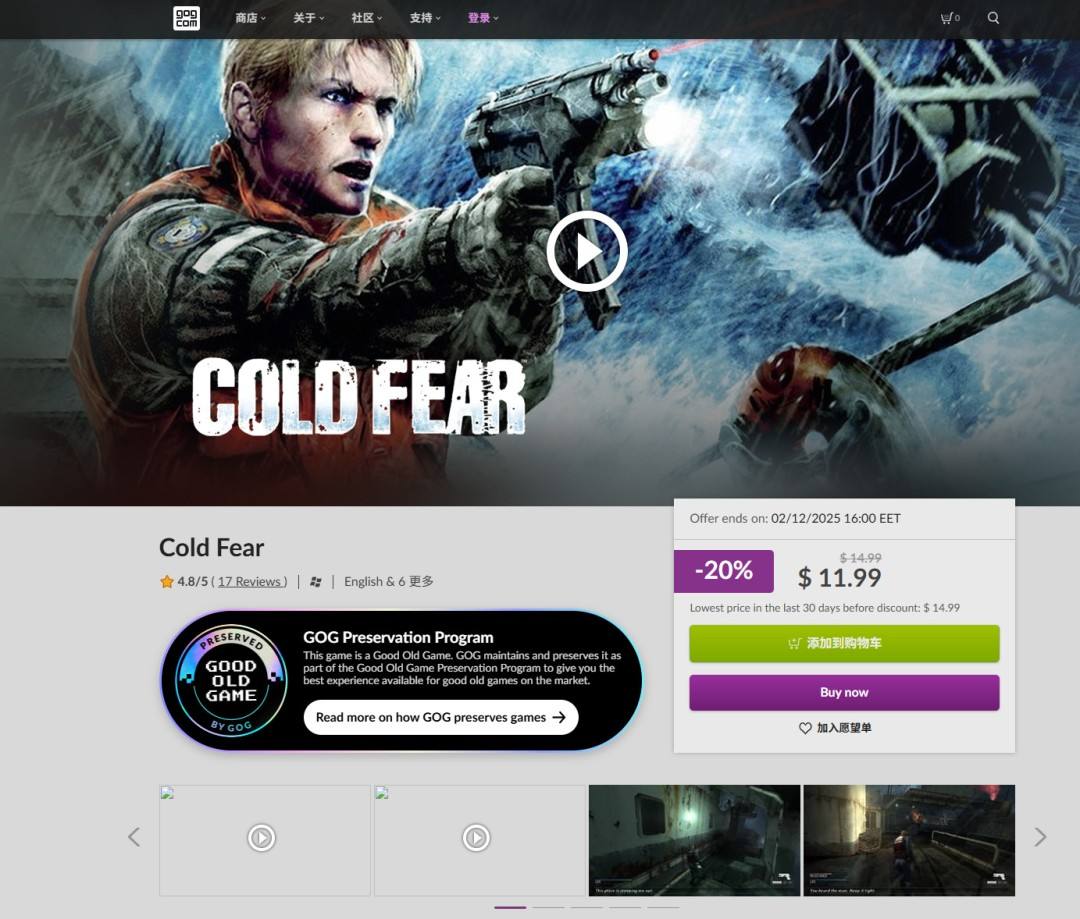 关键词: GOG;雅达利;极度深寒;我还活着;经典重发;DRM-Free;Windows 11;4K;云存档;手柄支持;高刷;成就;折扣