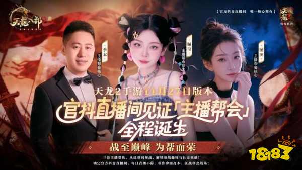 随着“巅峰争霸”资料片的到来,天龙江湖也为大侠们准备了全新的“主播帮会成长直播计划”!11月27日 - 12月4日锁定“天龙八部2手游”抖音直播间,带你见证六日帮战全程!每日直播不停,带你冲级打本、征战帮会战场!