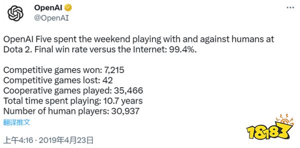 此后,OpenAI不断学习新的技能、新的玩法,最终推出了能够进行5V5对战的OpenAI Five。尽管在最初的5V5对战中,OpenAI Five的合作表现并不尽如人意,但直到2019年,它与TI8冠军战队OG进行了一场BO3对战,并最终以2:0的比分拿下了胜利,其成长速度超出了许多玩家的想象。在随后展开的Open Five擂台赛中,OpenAI赢得了7215场对局胜利,输掉了42场,胜率高达99.4%。