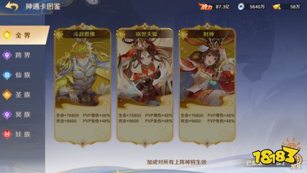 (4)金将神通卡会占用金将上阵名额,守护使初始最多上阵3名金色神将;