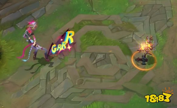 这款皮肤是金克丝的武器造型更具电磁科幻感,线条凌厉,充满力量。普攻叠加3次后命中敌人时会留下独特的 “GRRR”挑衅标识。