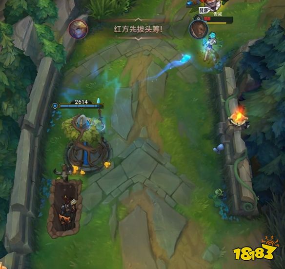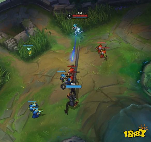 第一局比赛是路人玩家告诫与后路的对决。告诫选择的是EZ,后路则是选择了卢锡安。这第一局比赛可以说是相当精彩,虽然开局告诫凭借着EZ精准的技能释放成功拿到了卢锡安的“一血”。
