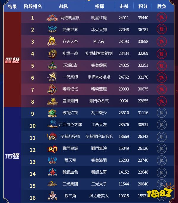 在经历这一轮针锋相对、悬念迭起的十六强鏖战之后,八支真正站在实力与意志顶端的传奇家族脱颖而出,成功会师本届赛事的巅峰舞台。他们分别是:乱世一战、齐天大圣、盛世豪門、嗜魂记忆、完美世界、玩爆E族、网通明星队、一代宗师。