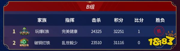 此前通过一周的前期练兵,最终入围正赛的家族战队共有16支,他们分别是赣超血色、荒天帝、江西血色之都、乱世一战、破铜烂铁、齐天大圣、三光集团军、圣裁战役师、盛世豪門、嗜魂记忆、铁三角、完美世界、玩爆E族、网通明星队、一代宗师、戦門皇城。