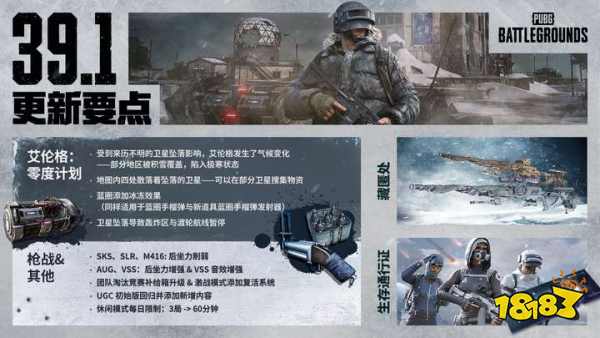 39.1版本更新中还同步进行了枪械平衡性调整。在减少 M416、SKS、SLR 后坐力的同时,增加了 AUG 与 VSS 的后坐力。VSS 的射击音效也有所提高,使玩家在受击时能更容易进行应对。