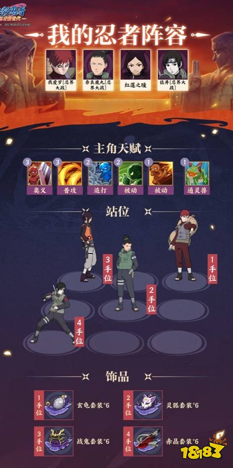 2、阵容二:我爱罗[忍界大战]+奈良鹿丸[忍界大战]+佐井[忍界大战]+红莲之瞳;