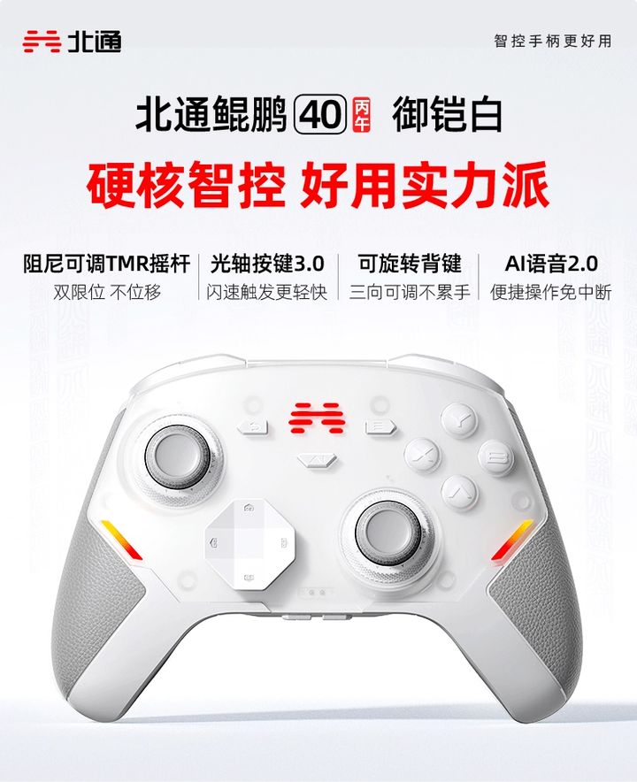 12月9日,国产手柄大厂北通推出全新智控手柄——北通鲲鹏40 御铠白。这款新手柄对比前代有什么提升呢?下面就一起来看看吧。