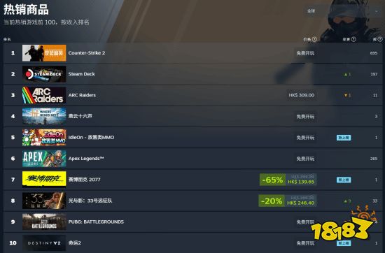 3)截至目前,《燕云十六声》位居Steam全球热销榜第4,紧随《CS2》和《ARC Raiders》之后。