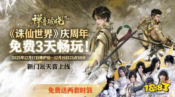 周年庆典盛大开启,跨界联动演绎禅武之美周年庆典福利拉满,更有破界艺术碰撞。值此周年里程碑,《诛仙世界》为所有仙友准备了诚意满满的登录赠礼。12月17日开服至12月20日零点开启全民免月卡畅玩。版本上线后,累计签到即可免费领取周年专属纪念时装、商城直售时装14选1自选礼包及全场直售时装通用7.9折券。更有商城满减、惊喜配饰盲盒等系列活动同步上线,共庆周年。