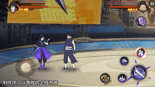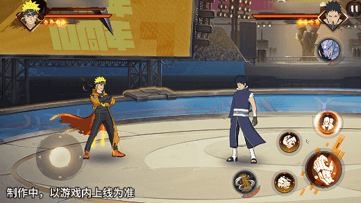 鸣人登场时普攻共4A,1A用尾兽化的外衣形成爪子向上爪击,2A转身用尾巴横扫,3A跃起连续爪击,期间可以拉摇杆多次转向拉扯敌人,4A推出一记螺旋丸。