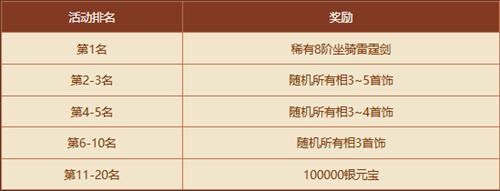 活动期间,玩家每消耗一张破阵符可获得1点探宝分,系统将根据探宝分进行全服(普通版/经典版/时间版参与活动的玩家分别进行排名)排名。前20名玩家将获得排行奖励,让你的荣耀之路满载而归。