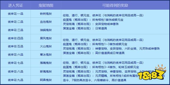 彼岸花的品阶越高,玩家能够前往的幽冥鬼狱层数越深,相应的奖励也更加丰厚。玩家可以通过右键点击彼岸花,消耗金元宝进行炼化,最多可获得8条特性,且每朵彼岸花仅可炼化30次,炼化后的彼岸花将拥有更强大的属性效果。(彼岸花的特性炼化一次增加一条,当拥有8条特性时,再进行炼化不再增加条数,而是随机重置一条特性。)