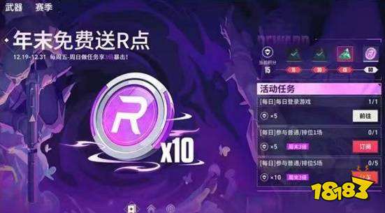 12月19日至31日,年末周末礼活动火热开启。活动期间的每周五到周日,完成活跃任务可享3倍进度暴击,免费领取R点和源能币,最快2天便可拿满奖励。