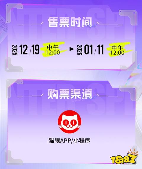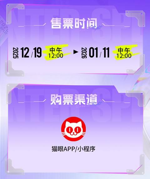 本届冬季赛线下赛门票将于2025年12月19日中午12:00正式开售!各位魂友们可以在猫眼APP/小程序搜索“2025英魂之刃精英联赛冬季赛”进行购票!