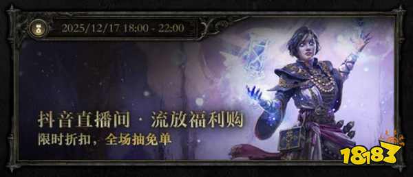 抖音直播间内,流放福利购值得闭眼冲冲冲,限时折扣享不停,更有全场抽免单,坐等流放者中的天选之子。