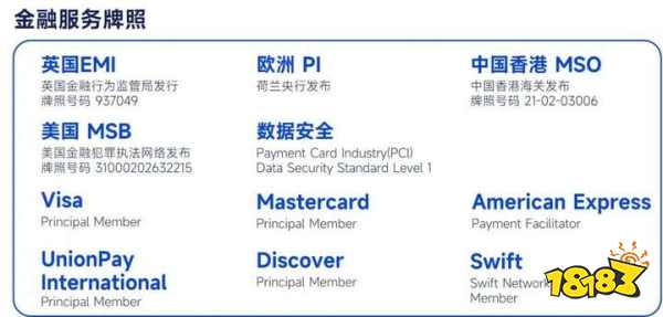 除此之外,在游戏企业普遍高度关注的资金安全层面,ONERWAY也有较佳的保障能力。 ONERWAY拥有英国EMI、欧洲PI等金融服务牌照,覆盖多个主流国家和地区,这意味着于ONERWAY中转的资金,始终受到地区金融监管的保障。