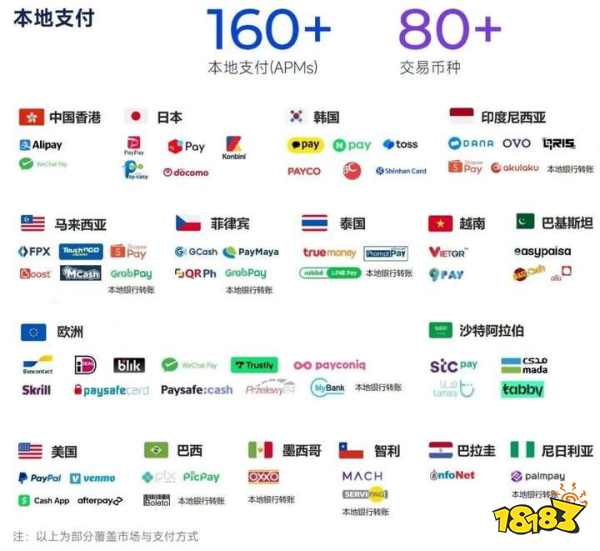 以在跨境支付领域拥有多项成熟解决方案的ONERWAY为例, ONERWAY支持170+全球主流支付方式,其中本地支付160+,覆盖160+国家/地区、80+币种,这意味着与ONERWAY合作的游戏产品不论上线哪一地区、ONERWAY均能给到较佳的支持。