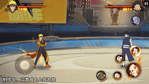 鸣人登场时释放一技能将会凝聚查克拉形成九喇嘛,九喇嘛张嘴向前冲击,三连啃咬敌人。