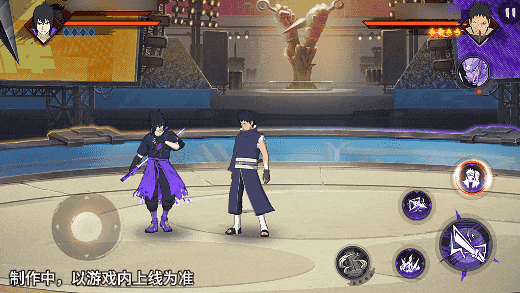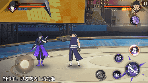 鸣人或佐助任意一方登场时,长按奥义键,可消耗4颗奥义点发动奥义。鸣人使用超大玉螺旋手里剑,佐助使用须佐能乎加具土命攻击敌人,最后形成威装须佐能乎横扫斩击,将敌人终结!