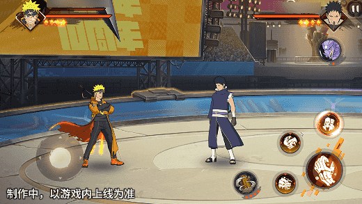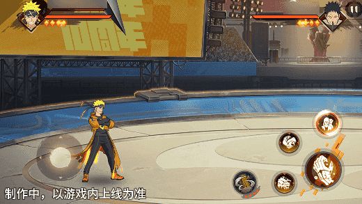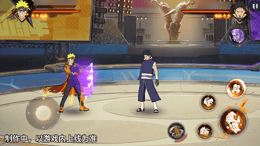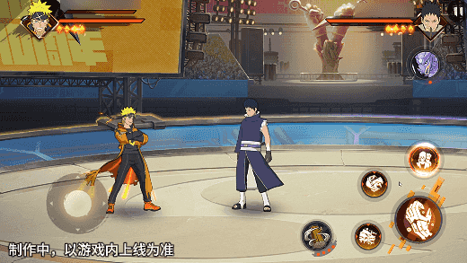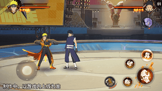 鸣人登场时普攻共4A,1A用尾兽化的外衣形成爪子向上爪击,2A转身用尾巴横扫,3A跃起连续爪击,期间可以拉摇杆多次转向拉扯敌人,4A推出一记螺旋丸。