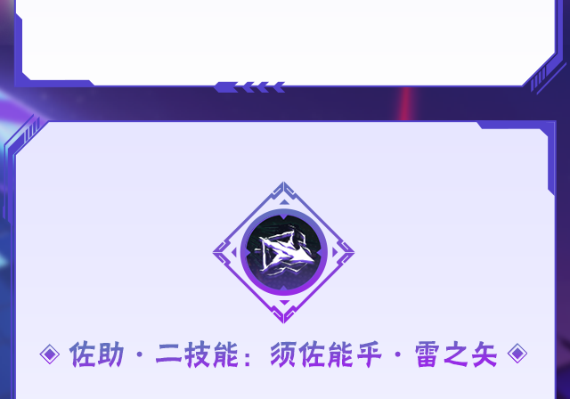 佐助登场时释放二技能,将会展开须佐骨架并拉弓,向前射出一发雷箭。