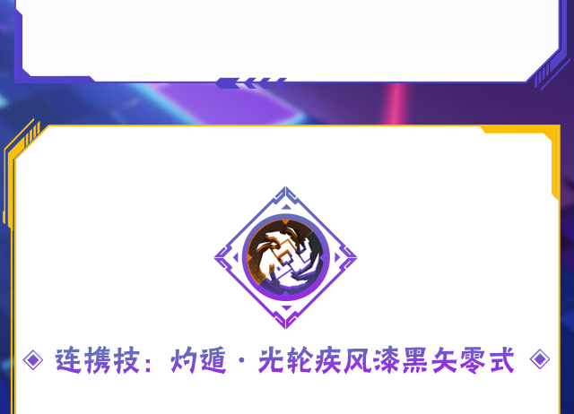 鸣人或佐助任意一方登场时,在一技能后摇点按奥义,将会消耗一颗奥义点,召唤对方一起打出连携技:灼遁·光轮疾风漆黑矢零式。鸣人的螺旋手里剑与佐助的加具土命融合,形成灼遁·光轮疾风漆黑矢零式向前持续冲击敌人,连携技结束后自动切换为另一角色,并进入强化状态,使用任意技能后强化结束。