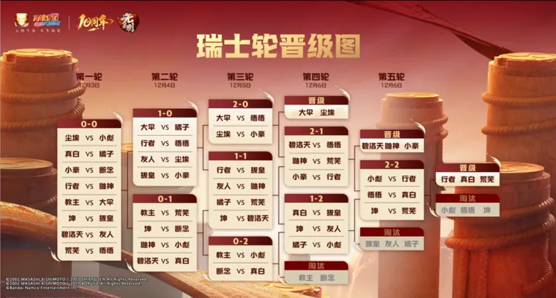 2025《火影忍者》手游年度总决赛无差别瑞士轮中,选手们历经五轮精彩比拼,最终大伞、尘埃、碧洛天、鼬神、小豪、行者、真白、荒芜成功晋级八强!