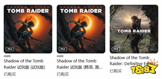 - 搜索并找到《古墓丽影:暗影》,先点击领取该作的“试玩版”。