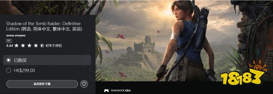 PlayStation 港服商店今日出现重大定价异常!原价 299 HKD(约合人民币 270.5 元)的 《古墓丽影:暗影》(Shadow of the Tomb Raider) 现可限时免费领取。这疑似“临时工”操作的漏洞随时可能被修复,各位玩家请务必抓紧时间“白嫖”入库!