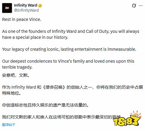 Respawn 工作室官方:“Vince 是行业的巨人和传奇。他不仅是一位远见卓识的领导者,更是一位信任团队、鼓励大胆创意的挚友。他塑造的游戏将影响整整几代人。”
