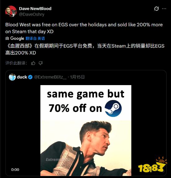独立游戏发行商New Blood Interactive的联合创始人兼CEO Dave Oshry近日分享了一个有趣案例,揭示了Epic游戏商店免费赠送策略对Steam平台销量的意外促进作用。他举例称,第一人称射击游戏Blood West在Epic限免期间,其Steam版本的销量反而出现了大幅增长。
