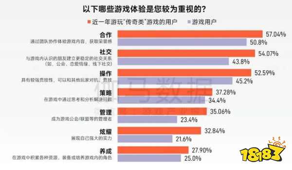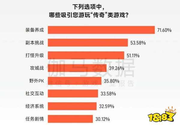 从用户偏好来看,超过五成“传奇”IP用户重视合作、社交与竞技对抗,这与其以团队副本、攻城战为核心的强交互玩法高度契合。值得注意的是,“传奇”IP用户对“成为公会管理者”和“展现实力”的重视度显著高于普通游戏用户,说明“传奇”IP用户在寻求游戏乐趣的同时,也注重在游戏中构建社会地位、实现自我认同。在此背景下,“装备养成”以71.6%的占比成为最吸引玩家的要素,成为实力外化的载体。