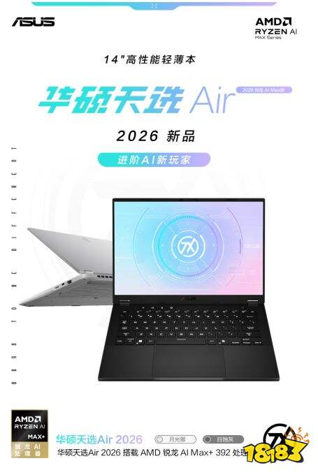 1月22日上午10点,全新14英寸高性能轻薄本华硕天选Air 2026系列开启预约,新品包含天选Air 2026锐龙AI Max版与天选Air 2026两个版本。其中天选Air 2026锐龙AI Max版搭载AMD 锐龙 AI Max+ 392处理器,集成Radeon 8060S集显与64GB统一内存,支持本地AI大模型部署;天选Air 2026则搭载锐龙AI 9 H 465处理器与满功耗RTX 5060 GPU,为创作与游戏提供强劲动力。首发期间,华硕天选Air 2026系列可享1000元优惠券及国家补贴,到手价仅8499元起,1月26日上午10点正式开售,切勿错过。