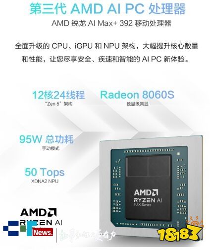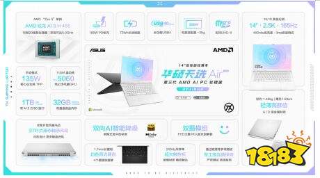 华硕天选Air 2026锐龙AI Max版搭载AMD 锐龙 AI Max+ 392处理器,基于4nm制程及“Zen 5”架构打造,12大核24线程,最高加速频率达5.0GHz。内置RDNA 3.5架构Radeon 8060S集显,具备40个计算单元,图形性能达到现代独立显卡水平,满足生产力、AI、大型游戏等性能需求。