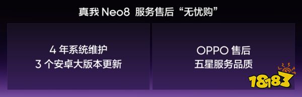 在强大产品之上,真我Neo8更提供"无忧购"服务保障。系统维护方面,真我Neo8承诺4年系统维护与3个安卓大版本更新,从大一用到大四,系统仍能保持流畅如新的使用体验。售后服务方面,真我手机将于今年4月全面接入OPPO售后服务体系,享受OPPO五星服务品质,包括面对面维修、可视化寄修服务、30天性能故障包换、维修部件至高180天质保等全方位保障,让用户买得放心、用得舒心。