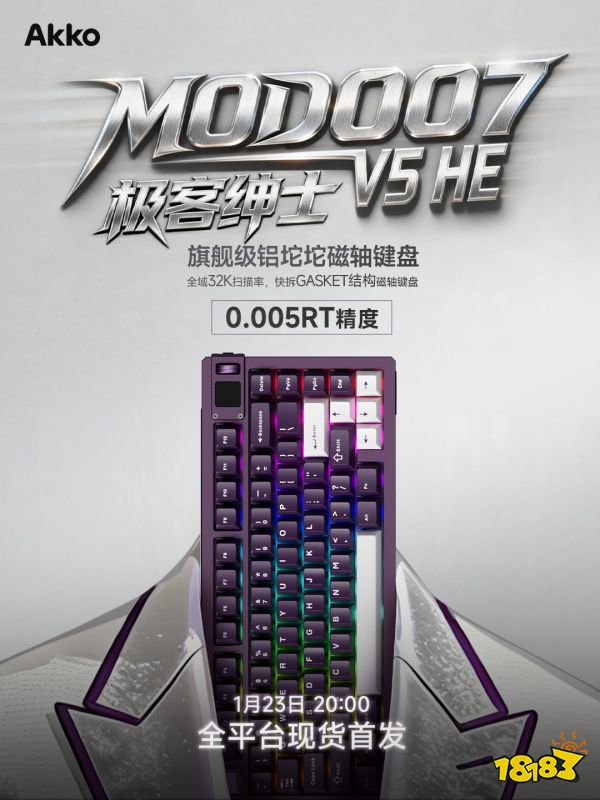 以绅士的礼序,驾驭极客的锋芒。每一次敲击,都是理性与狂热的和鸣。Akko MOD007 V5 HE磁轴键盘将于2026年1月23日20:00重磅首发!作为一款面向高端玩家与键盘发烧友的力作,该键盘不仅在结构上实现全面升级,更在个性化与实用性方面带来全新可能,打造磁轴键盘手感新趋势。