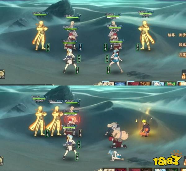 8、我方鸣人集齐尾兽点,再次奥义造成伤害;