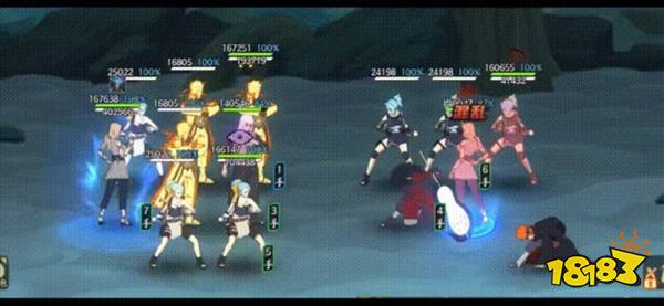 3、我方水主使用奥义,对方斑想要打断,我方鸣人打断对方斑;
