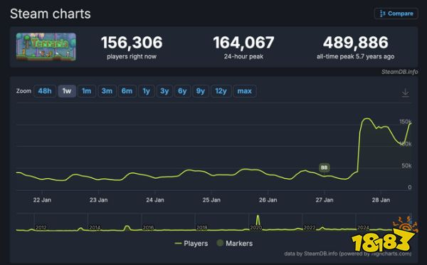 本次1.4.5版本是泰拉瑞亚近几年来规模最大的更新之一,成功吸引了大量老玩家回归体验。尽管当前在线峰值与2020年5月创下的48.9万历史纪录尚有差距,但超过17万的数据依然显示出游戏异常活跃的社区生态与旺盛的生命力。