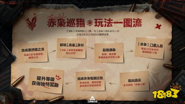 烽火地带全新玩法-赤枭巡猎上线,在该玩法中干员们可化身赛伊德,或是以其卫队成员的身份参与行动。