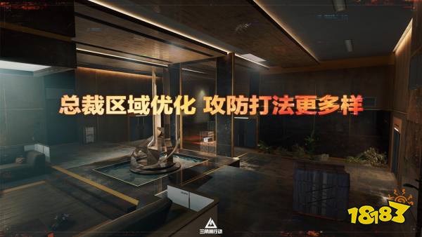 总裁室也进行了结构优化,总裁楼梯增加了破洞,给攻守双方都提供了战术博弈空间。总裁走廊进行了扩宽,让干员们的枪线部署、道具交换拥有更多空间,破局机会也随之增加。除此之外, 我们也对全图大量细节点位也进行了优化,例如浮力增加侧门可以和楼顶抗衡、黑室电梯可以从箱子跳下不再掉血、发射区增加了防弹玻璃让西大能顺利过点等等,希望这些细节改动,能让大家获得更好的体验。