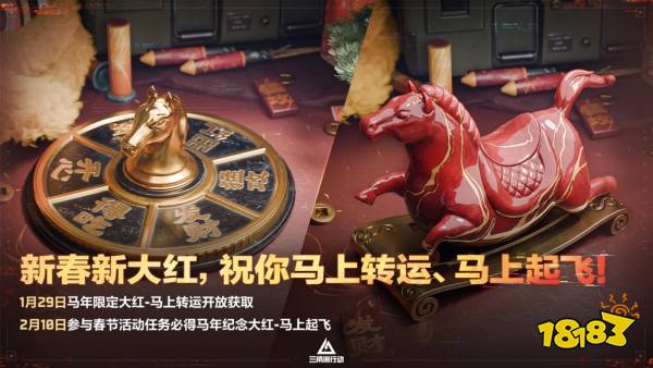 2月13日起,参与春节活动任务必得马年纪念大红「马上起飞」!预祝各位干员新的一年红红火火,马上起飞!