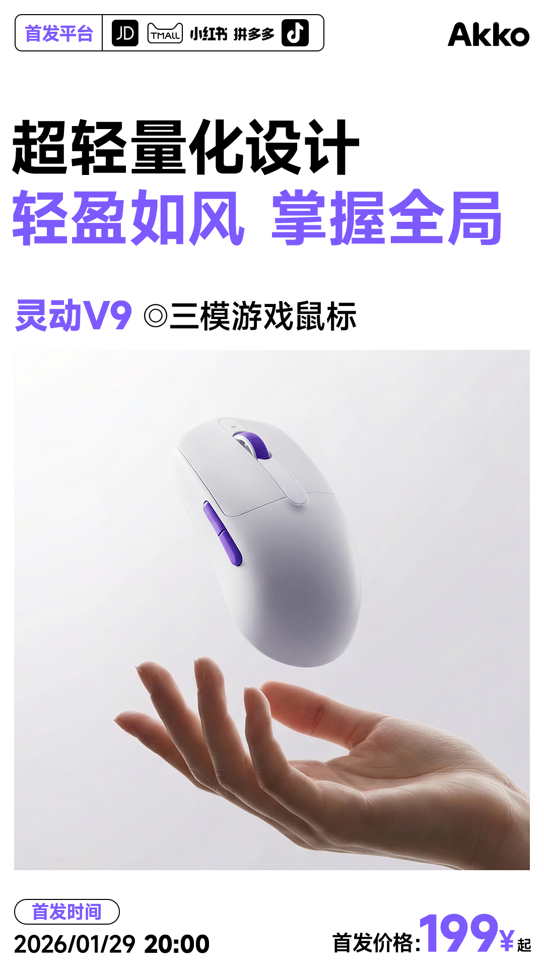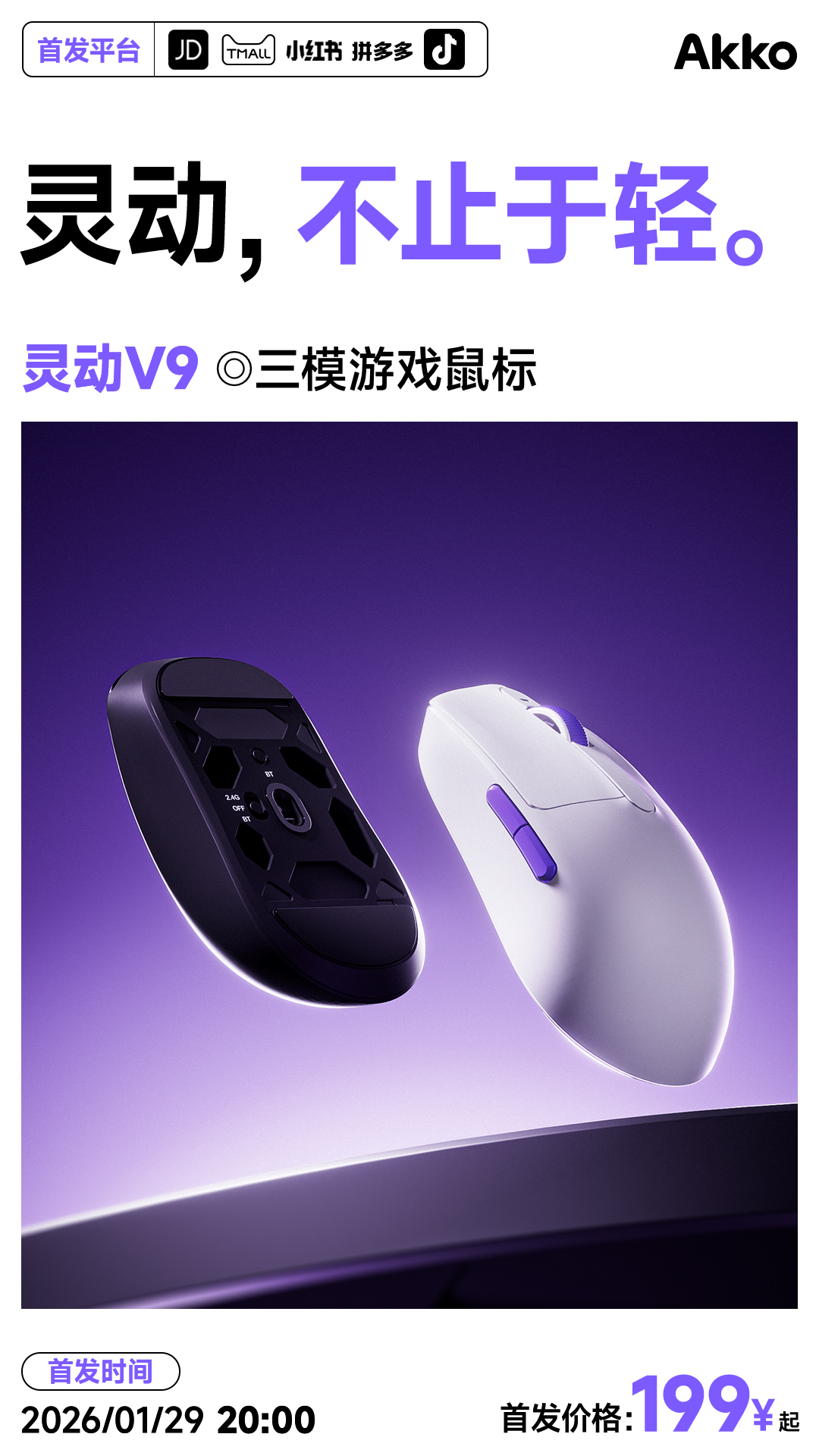 Akko灵动V9系列游戏鼠标:2026年1月29日20:00,全平台首发,超多首发福利等你来抢!