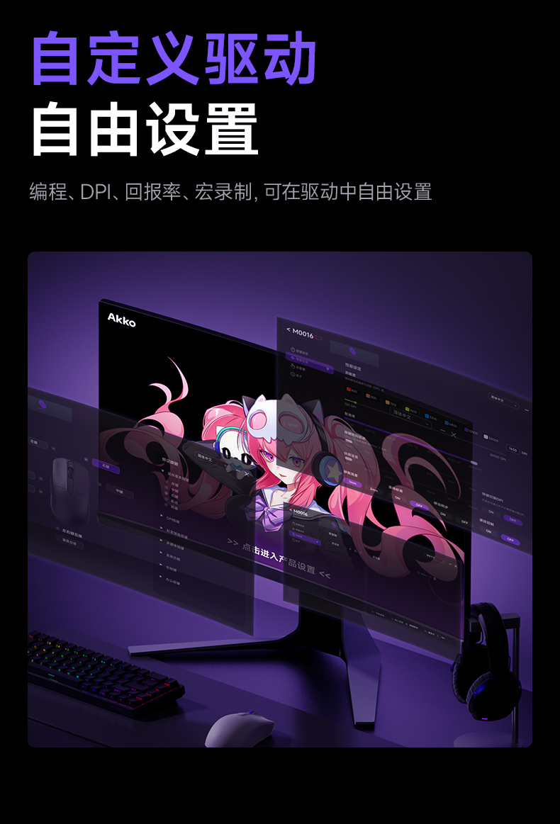 强大自定义:功能强大的专属驱动软件,允许用户对按键功能、多档DPI、回报率、宏录制等进行深度编程与设置,打造完全个性化的操控方案。