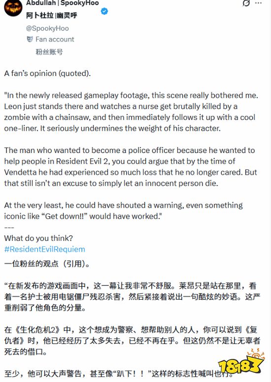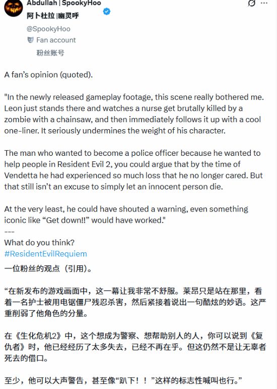 里昂的人物弧光本是生化危机9安魂曲最受期待的看点之一,粉丝都渴望了解这位资深特工多年来的经历与变化。尽管其多数新镜头表现获得认可,但这一旁观瞬间却让许多玩家感到不适。因为在系列传统中,里昂的核心特质之一正是其保护平民、尽力帮助每一个人的强烈使命感。因此,这一场景显得格外令人困惑且难以接受。有社交媒体用户分享了玩家的观后感,指出看着护士被杀后里昂仅说了一句玩笑话,此举让人非常不舒服。