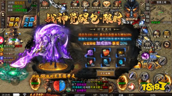 肯定有零充党担心:不充钱真能玩得爽、能霸服吗?答案必须是能!但说实话,要是想前期少走弯路,快速站稳脚跟,花几块、十几块解锁核心礼包,性价比真的高到离谱。就说6元的战神觉醒包,限时发售,直接带走终极SR级时装,攻击力、防御力双双拉满,最大生命值永久+10%,最终切割值额外+10%,元宝回收还多20%——花6块钱,前期刷怪、PK直接建立优势,后续发育更顺畅,这波投入,妥妥的稳赚不亏。
