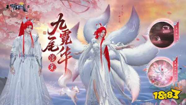 九尾狐主题外观【浮光·九尾霓华】于青龙秘宝上线。同系列动作、脚印一同奉上。听闻世人皆爱这霓华皮相,九尾狐应时而来,予少侠一场浮光美梦~