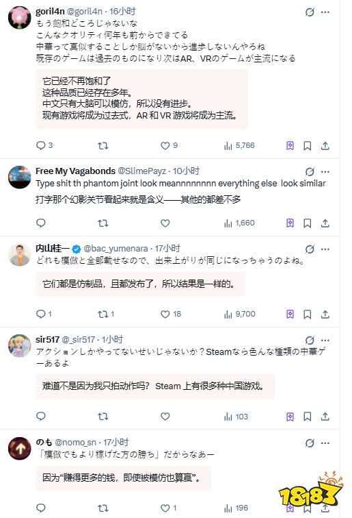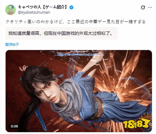日本博主@kyabetsuhuman在转发演示时评论道,游戏质量虽高,但近期中国游戏的外观风格显得过于相似。这一观点引发了大量海外玩家的共鸣,使得讨论焦点从单一游戏的品质,转向了对国产游戏整体创新性的审视。